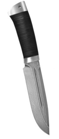 Внушительный нож с несокрушимым клинком, имеющим фальшлезвие по всему обуху. На голомени клинка с обеих сторон имеются внушительные долы, добавляющие прочность клинку толщиной в 5 мм. При солидной толщине клинка нож имеет хорошие режущие свойства. Это достигнуто широкими спусками обратной линзовидной формы и толщиной у режущей кромки 0,7 мм. Монтаж рукояти сквозной, неразборный. Рукоять большая, удобной для работы формы, имеет на навершии отверстие под темляк.